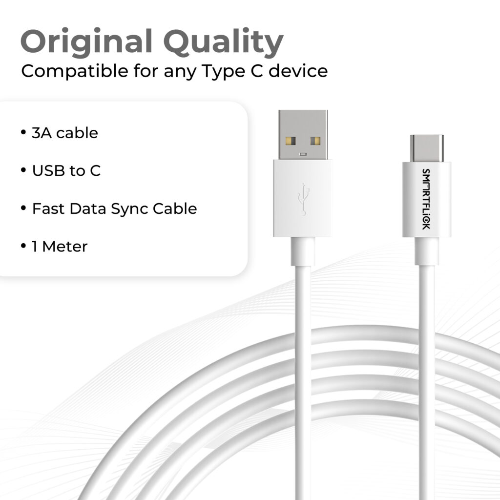 ₹1,799.00Quick Speed 3A USB A to Type C Fast Charging Cable for Mobile, Tablets & Other Type-C Devices Supports QC 3.0 Charge 480Mbps Data Transfer Speed (1M, White)