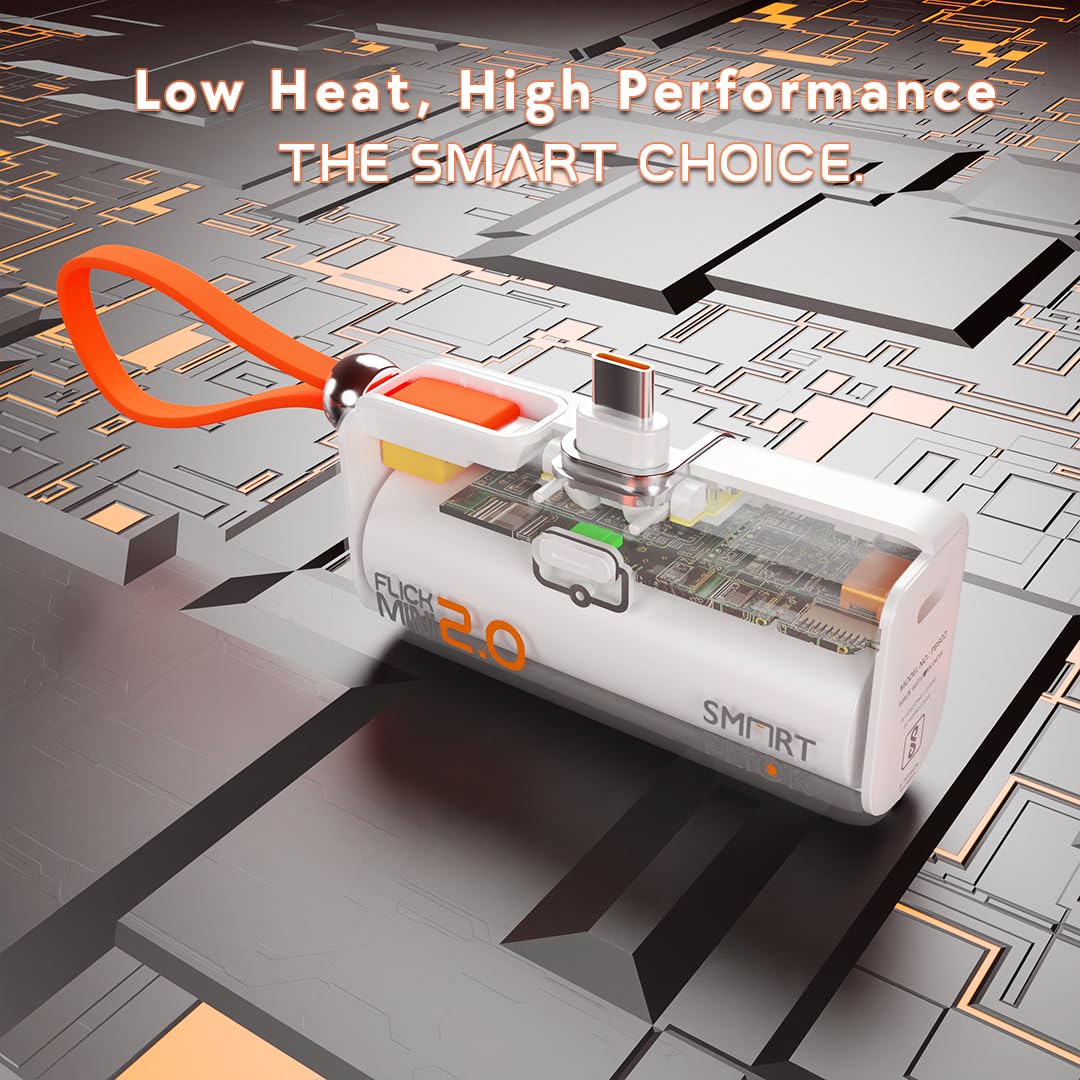 • Rapid Self-Charging Capability: FlickMini 2.0 can fully self-charge in approximately 1.5 hours using a 18W PD charger. This quick recharge time ensures the powerbank is ready to use whenever you need it.