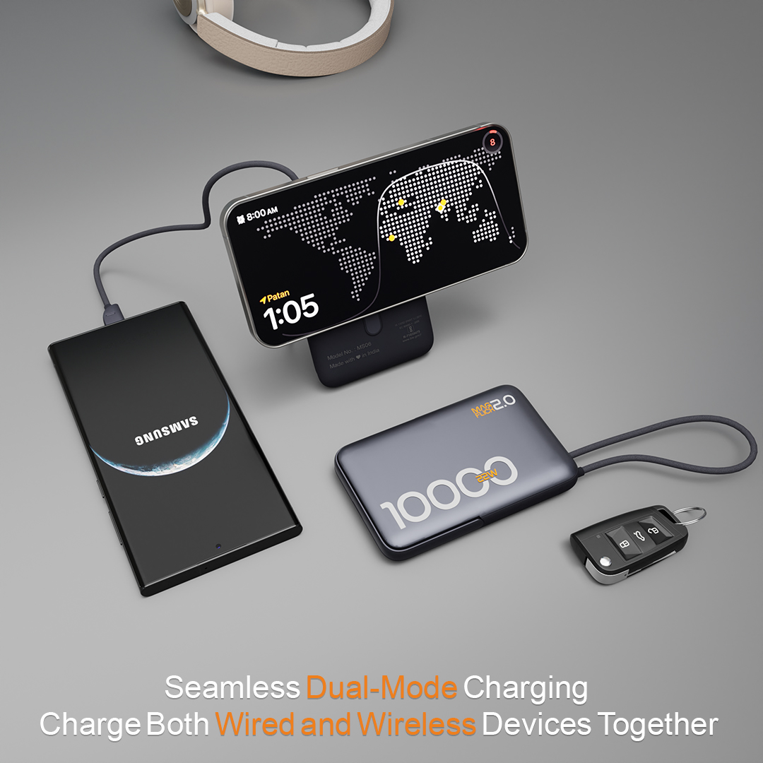 • Powerful Charging on the Go: With a 10,000 mAh capacity, this power bank delivers up to 15W fast wireless charging and 22W wired charging, keeping your devices powered up wherever you are