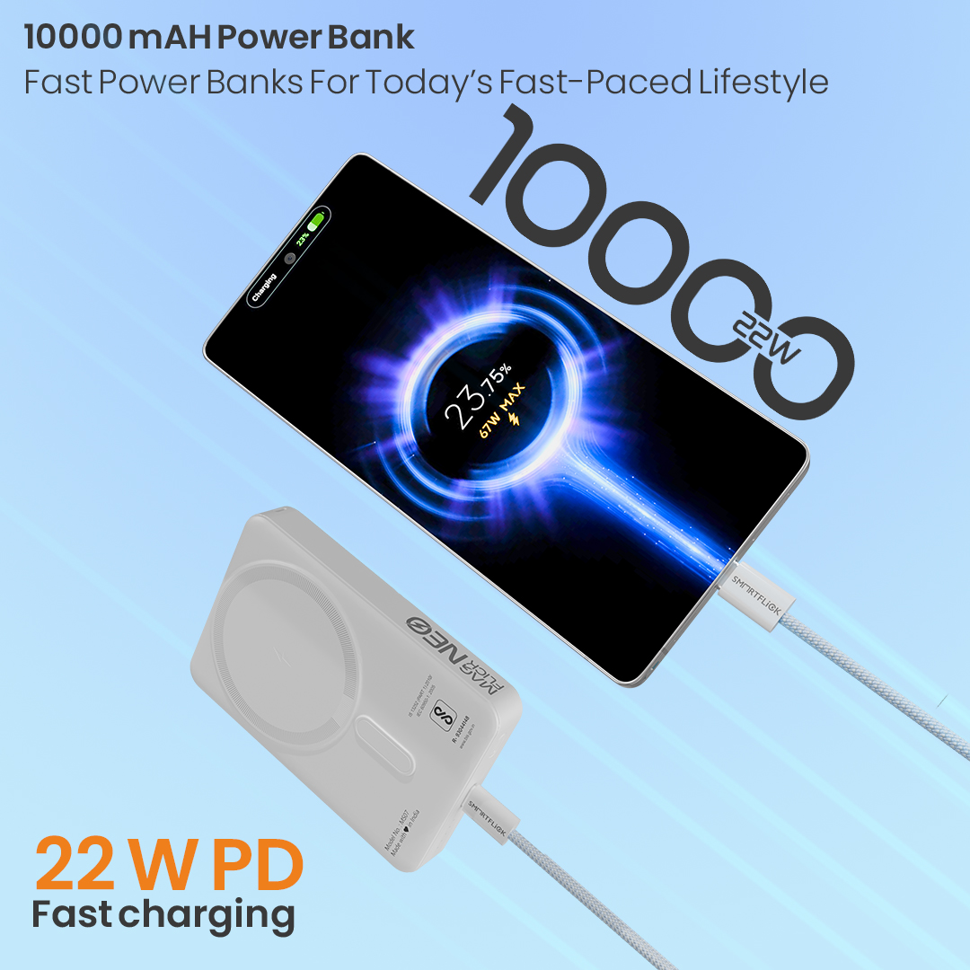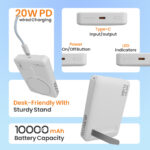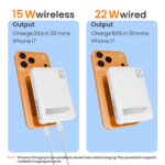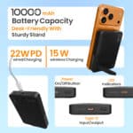 - Powerful Charging on the Go: With a 10,000 mAh capacity, this power bank delivers up to 15W fast wireless charging and 22W wired charging, keeping your devices powered up wherever you are