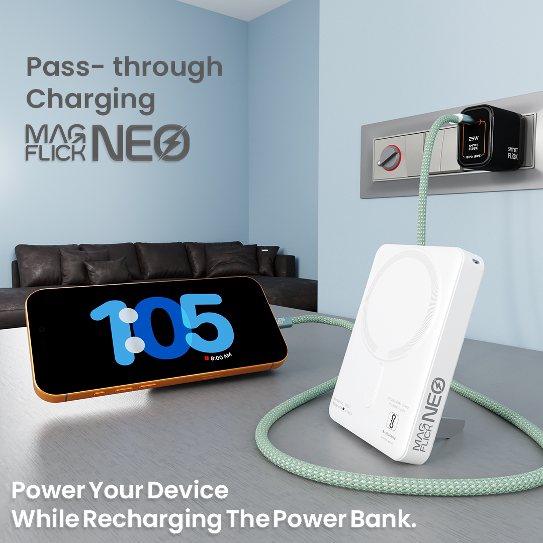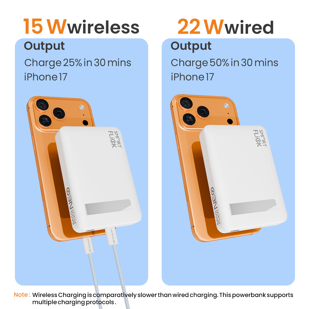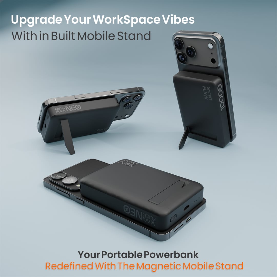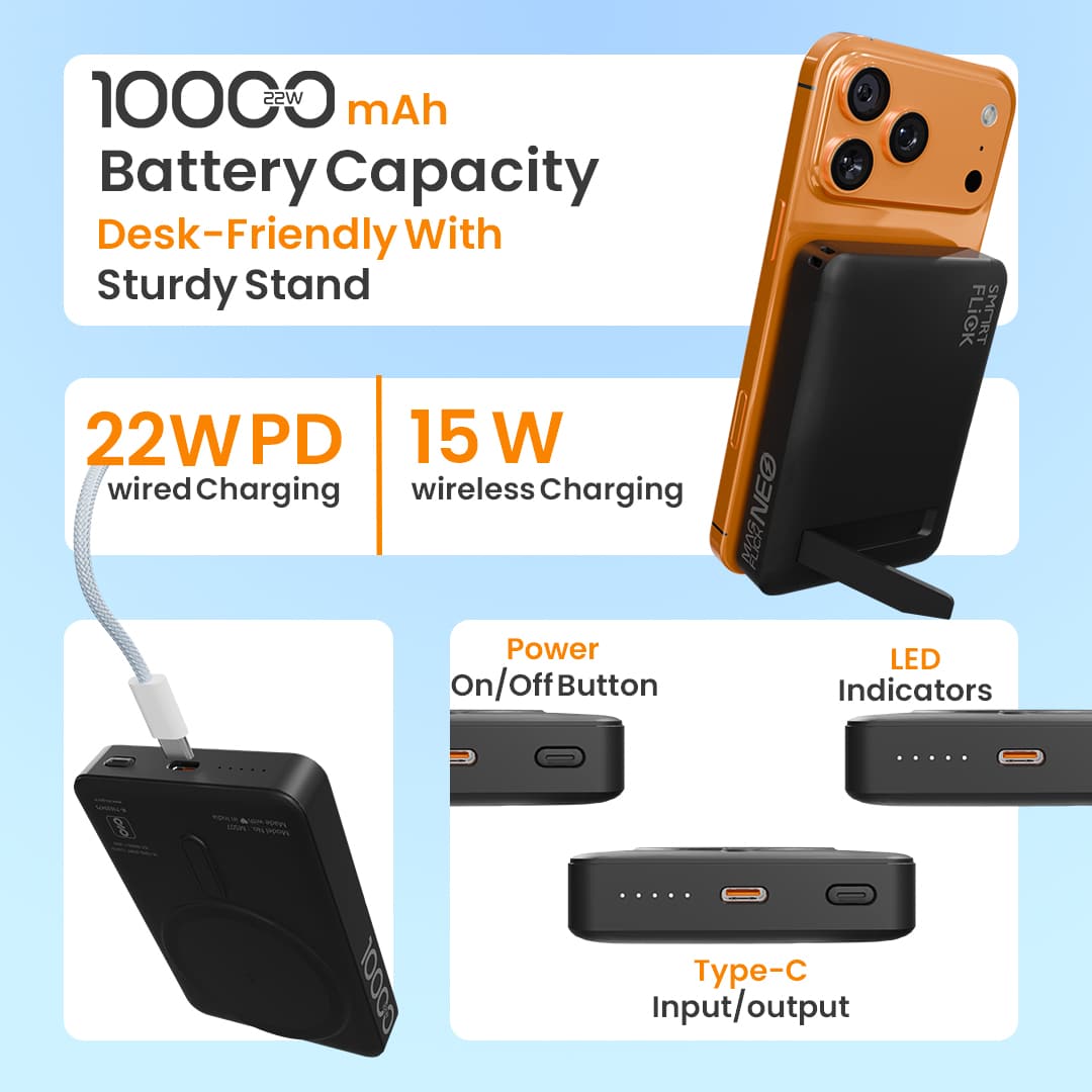 Buy 1 Get 1 (White and Black) – MagFlick Neo 10000mAh 15W Wireless Power Bank With Stand 22W PD wired Charging